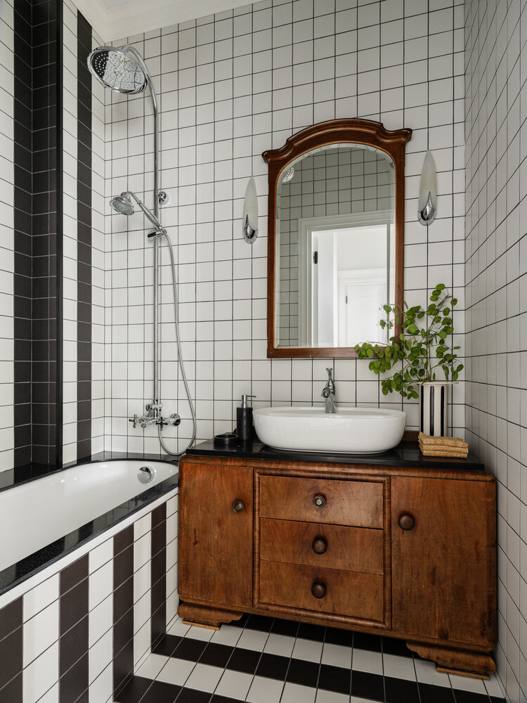 Зеркальная кухня, антиквариат и авторская мебель: как реконструировали однушку 27 м² в старом фондеДизайн