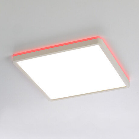 Изделие обладает высокой энергоэффективностью основного света – 120Лм/Вт, осветит до 13м². Мощность: основной свет - 32Вт, потолочная подсветка – 8Вт. Размер 30х30см, высота 2,5см. Свет безопасный для глаз, без мерцания и пульсаций. Тип крепления – удобная монтажная платформа.