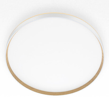 Настенно-потолочный светодиодный светильник Citilux ETALON CL750500R выполнен в современном стиле. Корпус изготовлен из белого ударопрочного полимера с декоративным внутренним ободом под дерево (бук). Рассеиватель матовый из оптического полимера. Модель оснащена двумя светодиодными модулями – основного света и красочной потолочной RGB подсветки.